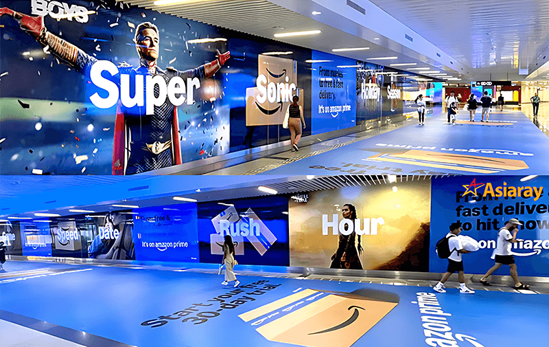 Selected stations support broader executions such as wallscapes, floor decals and concourse concepts.